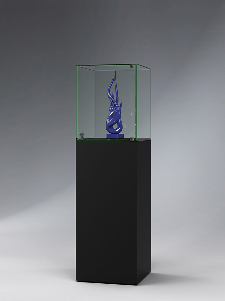 | Merkmale Vitrine: | abschliessbar, mit Beleuchtung, mit Drehtüren, mit Glashaube, mit Sockel, stehend |